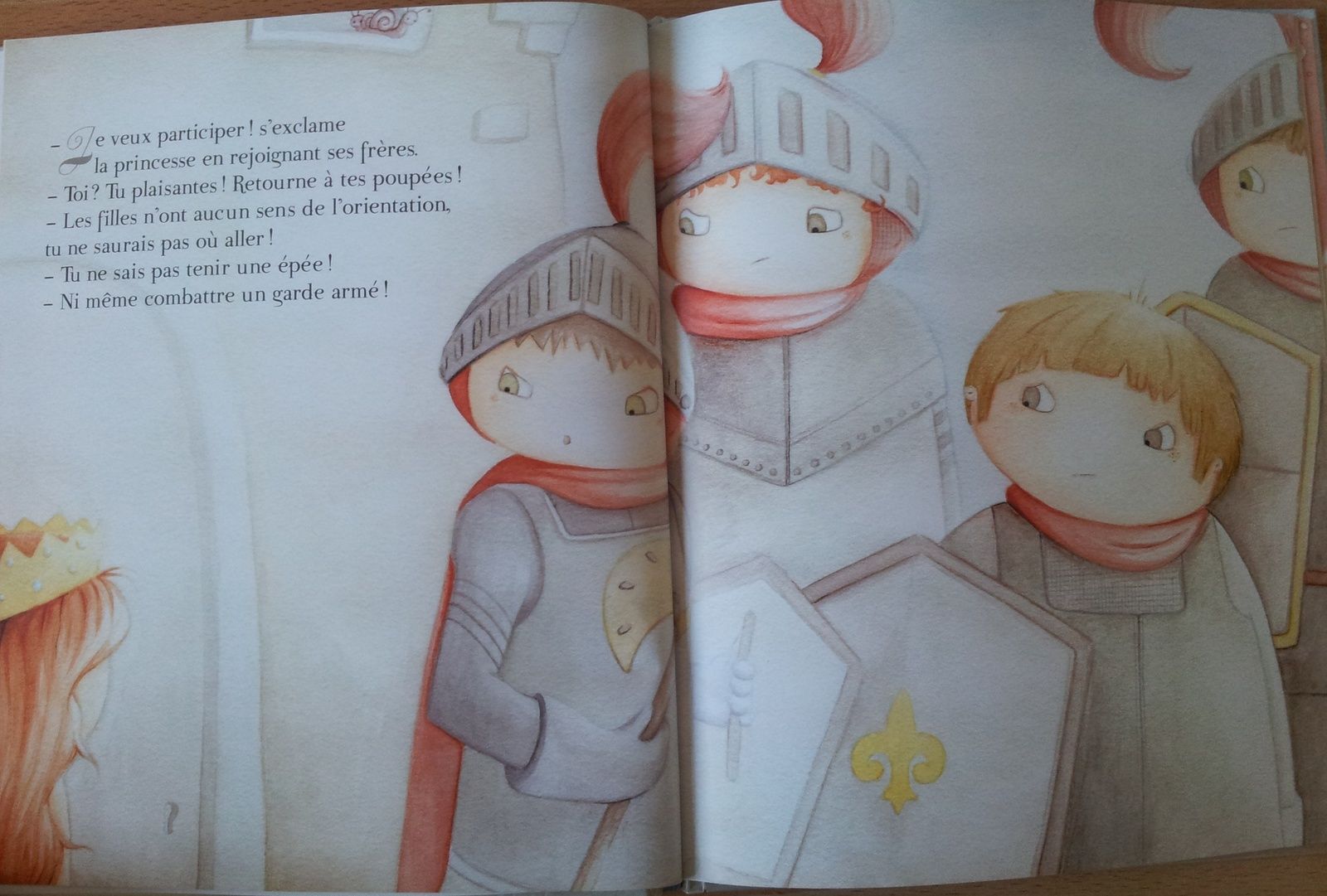 J’aime beaucoup l’univers du Moyen-âge, les chevaliers, les châteaux-forts, les princesses. C’est un thème souvent utilisé en littérature jeunesse, largement masculin, mais qui est ici très bien exploité pour renverser préjugés et idées reçues !